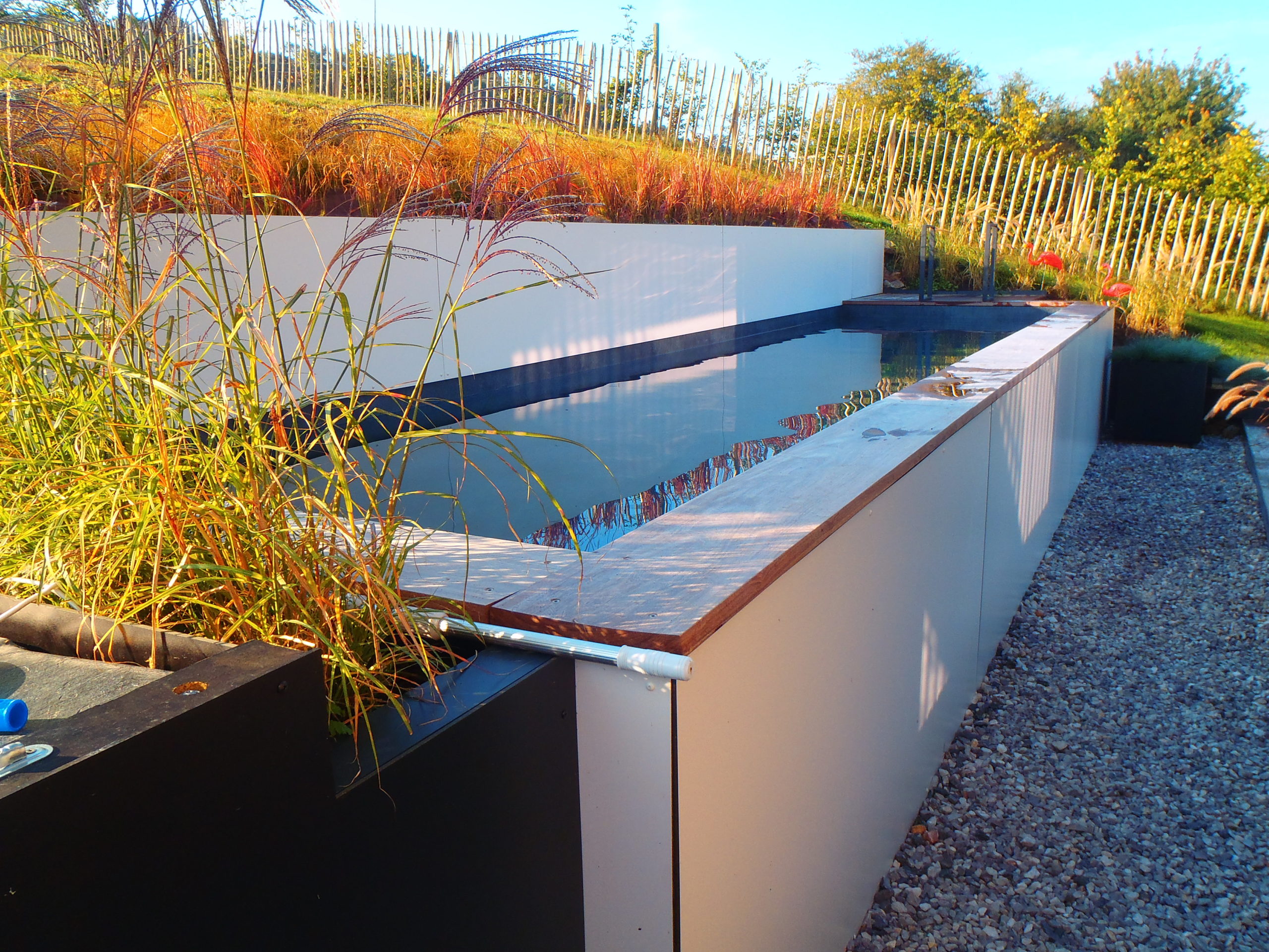 La construction d’une piscine en béton s’effectue à l’aide de blocs STEPOC.